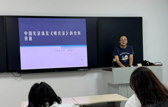 2024年9月13日,我系韩慧玲副教授以“中国实录体及《明实录》的史料价值”为主题,在内蒙古师范大学田家炳书院421教室为内蒙古师范大学民族学人类学学院中国少数民族史专业师生做学术讲座。