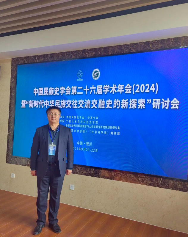 2024年9月21-22日,我系宝音特古斯副教授参加了由中国民族史学会、宁夏大学主办,宁夏大学民族与历史学院、中国社会科学院民族学与人类学研究所民族历史研究室承办的中国民族史学会第二十六届学术年会,本届年会以“新时代中华民族交往交流交融史的新探索”为主题,来自中国社会科学院、中国人民大学、中央民族大学、北京外国语大学、民族文化宫博物馆、南开大学、内蒙古大学、宁夏大学、西藏自治区博物馆等38所高校、科研院所、文博单位近百名学者参加了会议。