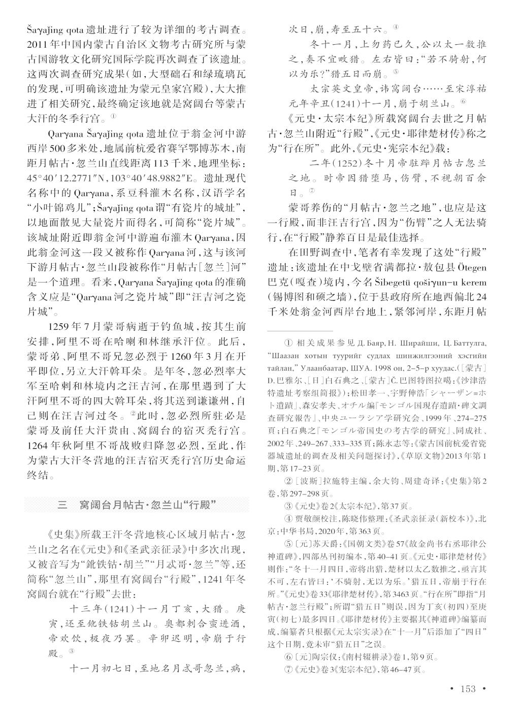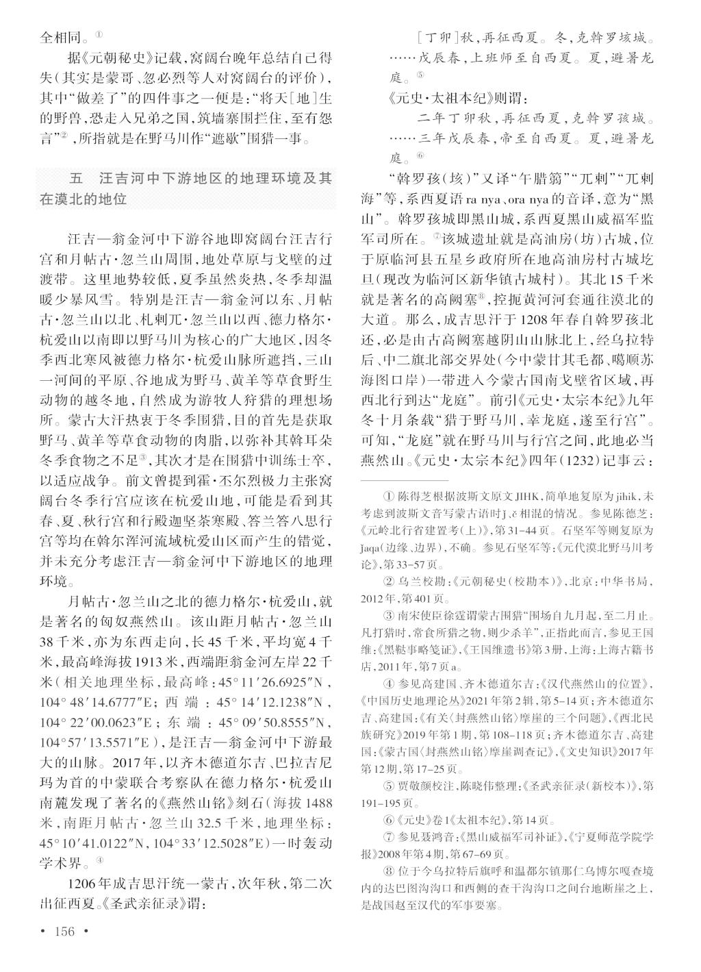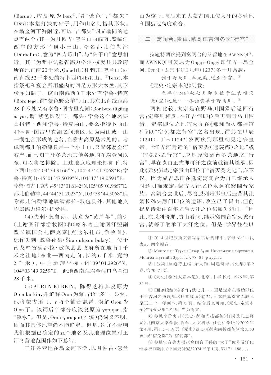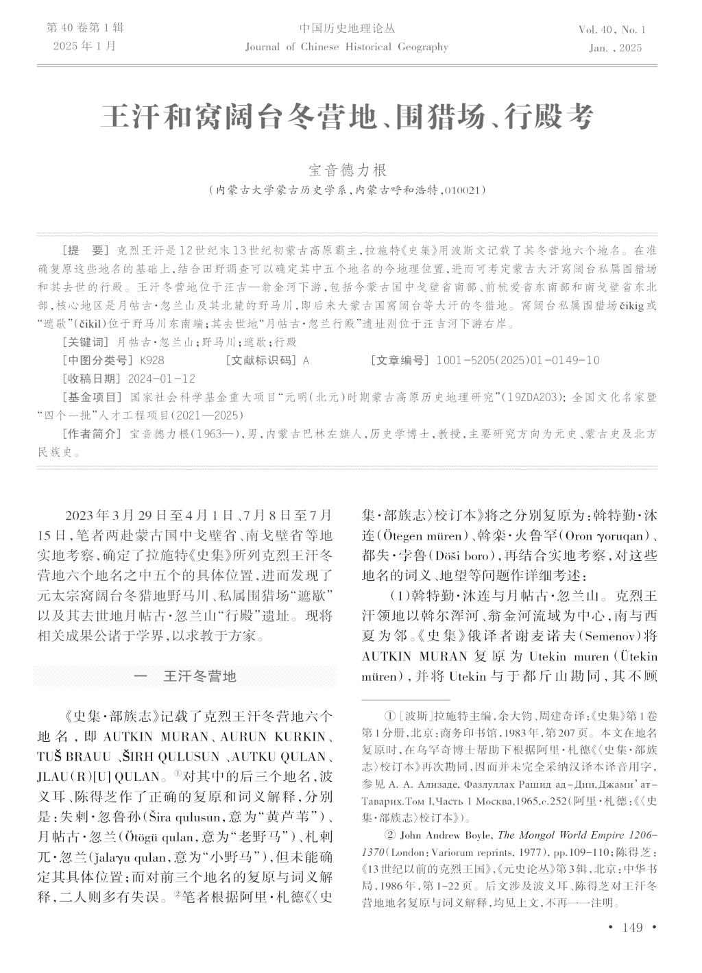 学术论文 | 宝音德力根:王汗和窝阔台冬营地、围猎场、行殿考