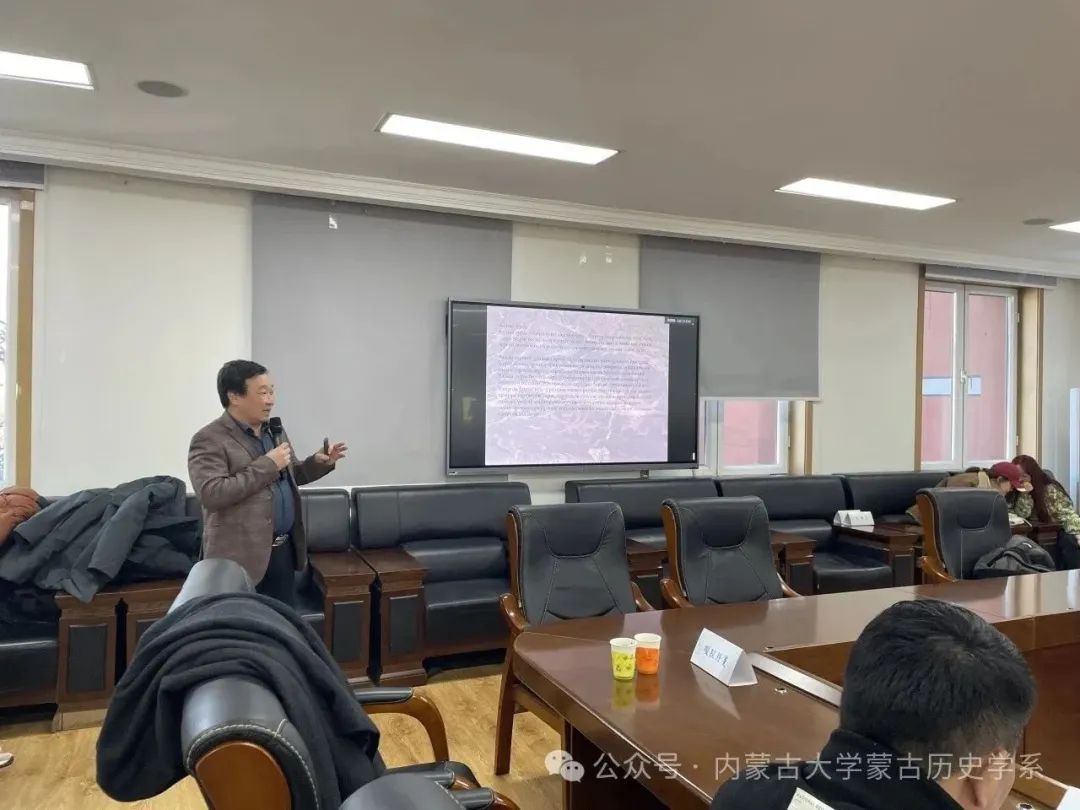 额日和金介绍了蒙古国科学院考古研究所的发展历史、人才队伍、科学研究、国际合作交流。同时表示,蒙古国科学院考古研究所非常重视与内蒙古大学的交流合作。