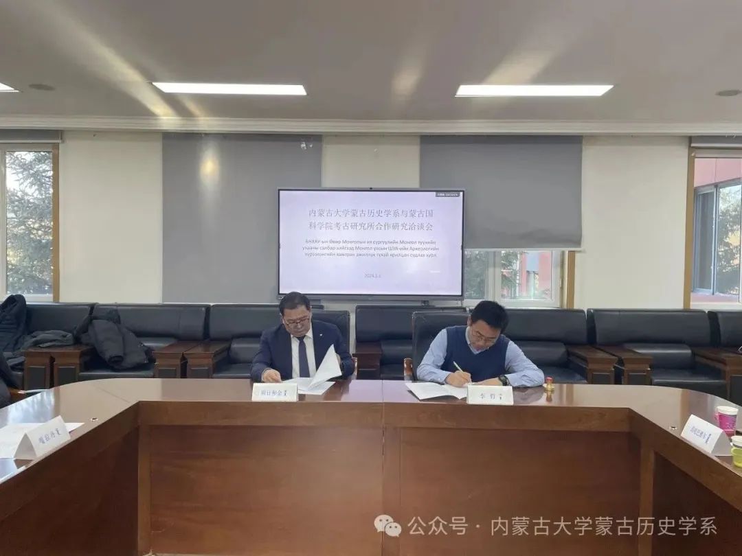 我校蒙古历史学系与蒙古国科学院考古研究所就联合开展考古调查与研究、人才合作培养、考古教学实践实习等内容进行了深入交流,达成了一系列共识,并签订了合作意向书,为双方后续更广泛深入的合作奠定了基础。