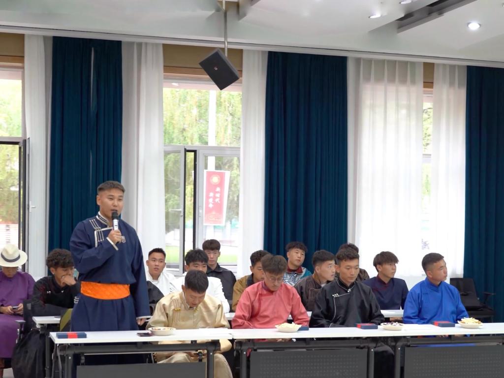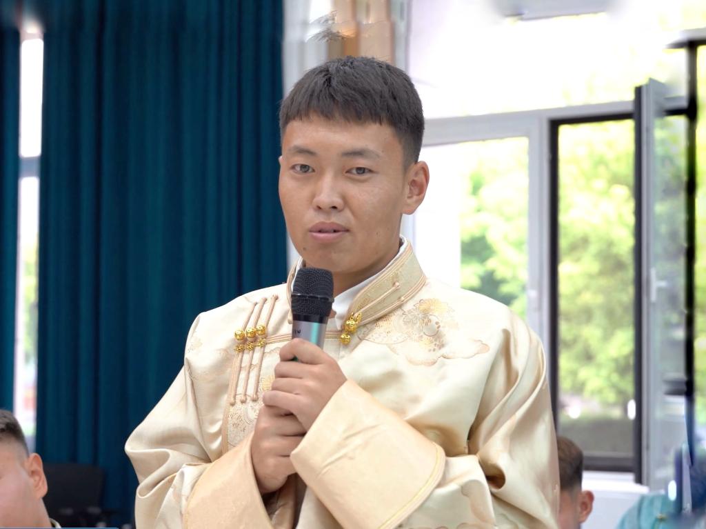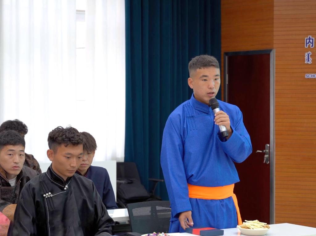 2020级新闻学专业旭日干作为助理教练,2020级播音与主持艺术专业那琴、2020级中国少数民族语言文学专业松布日作为队员代表分享了参加比赛的感想。